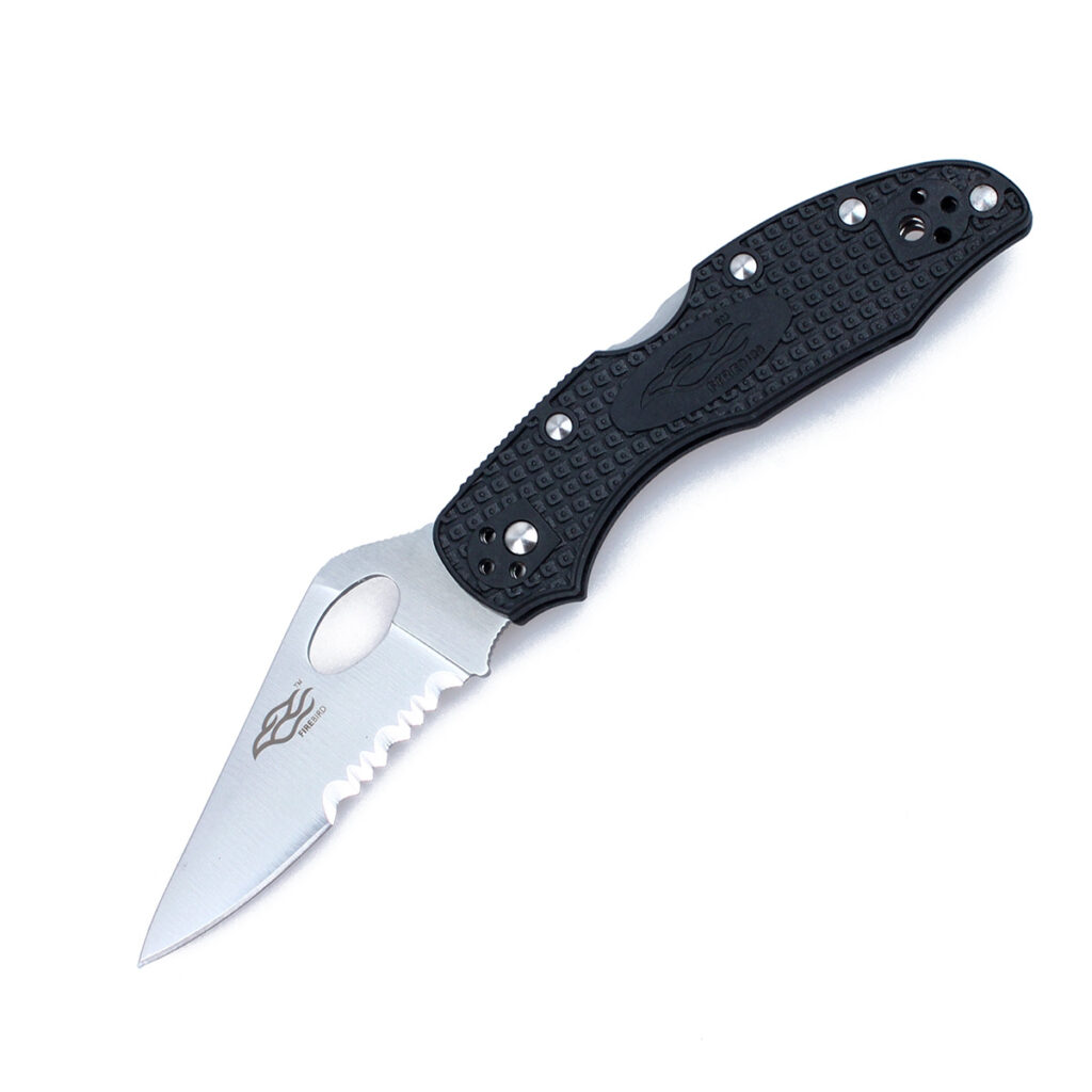 Опис ножа Firebird F759M-SBK: Простій по конструкції, але надзвичайно зручний в роботі ніж F759M-SBK увійшов в сімейство моделей для повсякденного використання. Він зроблений зовсім невеликим і досить легким (лише 67 грам), тим не менш, легко впорається з більшістю завдань, які будуть актуальні в місті або ж у процесі відпочинку на природі. Цим ножем можна почистити рибу, нарізати інгредієнти для бутербродів або похідного обіду, розрізати упаковку посилки. Враховуючи універсальність моделі, виробники вибрали для неї довговічні матеріали. Для леза використовується одна з найбільш популярних різновидів нержавіючої сталі — 440С. Вона відома відмінним балансом корозійної стійкості і твердості металу, яка складає 58 одиниць шкали Роквелла. Тому ніж довго тримається гострим, однак і доглядати за ним просто. На фінішній стадії ніж піддається сатинированию, що позитивно позначається на зовнішньому вигляді ножа, адже потертості і подряпини на ньому стають видні тільки після тривалого активного використання. Ріжуча кромка F759M-SBK зроблена комбінованої. Серрейторный ділянку призначається для розрізання мотузок, повсті, тканини і шкіри. З цими неоднорідними за структурою матеріалами ніж упорається досить швидко. Гладкий ділянку кромки акуратно розріже будь-які інші матеріали. Загальна довжина леза становить 75 мм. Рукоятка виконана в сучасному стилі: з плавними вигнутими формами, виїмкою знизу для пальців, візерунковою накаткою на поверхні. Альо вона не тільки красива, але і дуже зручна. До того ж, вибраний для ручки ножа матеріал (стеклонаполненный нейлон) відомий великим запасом довговічності і стійкості практично до будь-яких небажаних явищ. Він не вигорає, не вбирає воду, має високу міцність. В довершення, ніж обладнань якісним замком, який утримує його клинок в обраному положенні. Називається він Back Lock. Особливості: EDC складаний ніж; компактна і легка модель; лезо ножа не іржавіє (зроблено зі сталі 440С); розмір клинка — 75 мм; фінішне шліфування — Satin Wash; ріжуча кромка зроблена комбінованої; загальний розмір ножа — 175 мм; модель переважати 67 грам; рукоятка ножа виготовляється з нейлону з наповнювачем з скловолокна; у ножі працює замок Back Lock. Гарантія: Модель F759M-SBK продається з гарантією виробників, що покриває 12 місяців експлуатації після продаж.